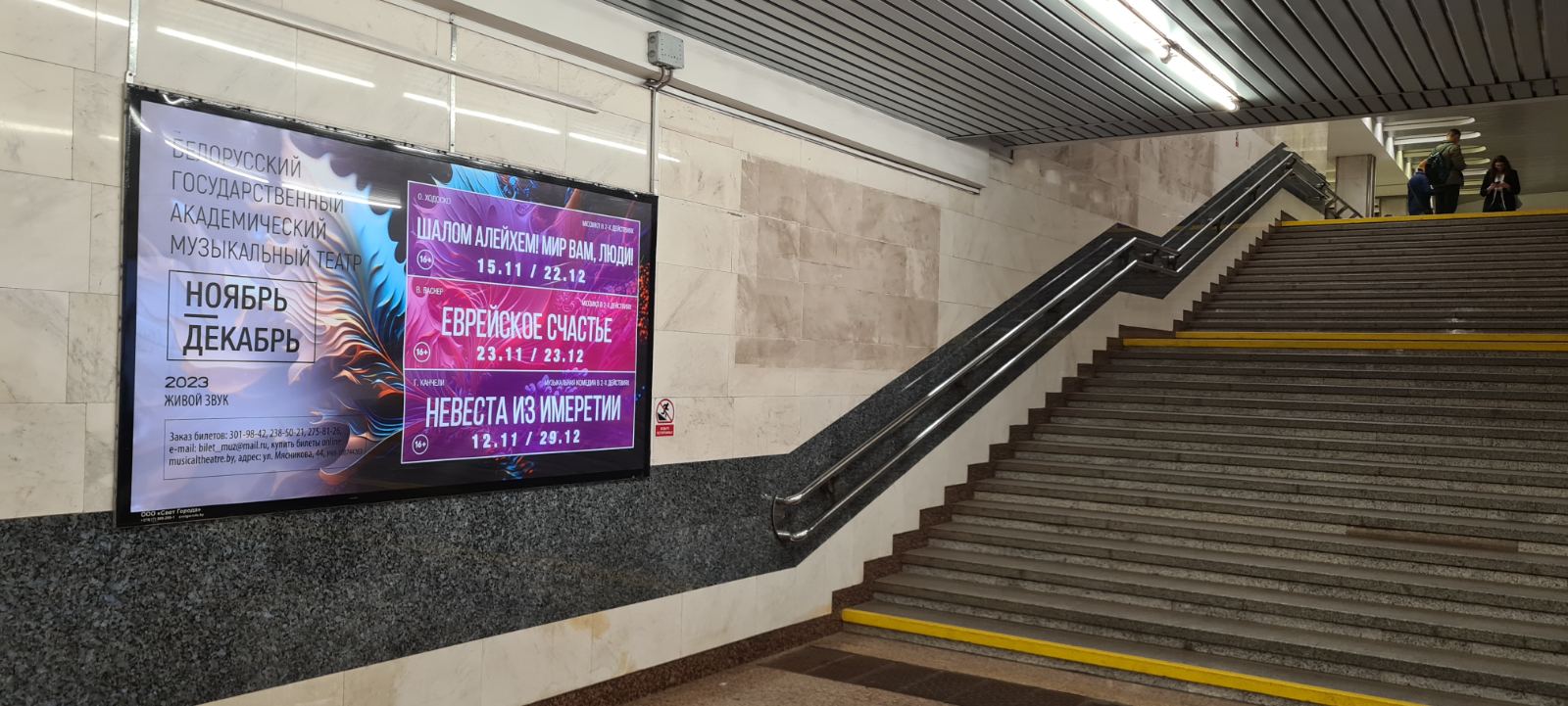 Белорусскую государственную филармонию связывает с ООО "Свет города" плодотворное сотрудничество на протяжении трех лет. Предприятие предоставляет услуги по своевременному и эффективному размещению световой и несветовой рекламы в метро, в подземных переходах, в зданиях ж/д вокзала и аэропорта г. Минска. Площади различной ценовой категории, удобной как для отдельных мероприятий, так и для долгосрочных проектов и имиджевой рекламы. Ежемесячно Белорусская государственная филармония размещает персональную информацию различных концертов и фестивалей.